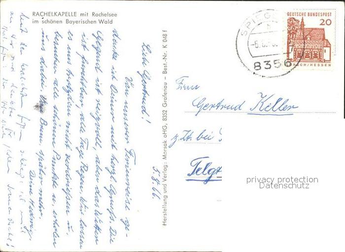 72367165 alte Postkarte Riedlhuette Rachelkapelle mit Rachelsee Bayerischer Wald postalisch gelaufen Erhaltung siehe scans KatCode: 11110009272143