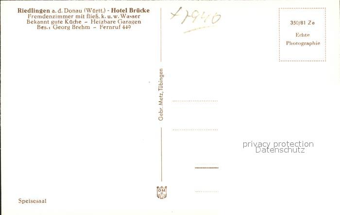 41784269 Riedlingen Donau Hotel Bruecke Speisesaal postalisch nicht gelaufen Erhaltung siehe scans KatCode: 11110008426097