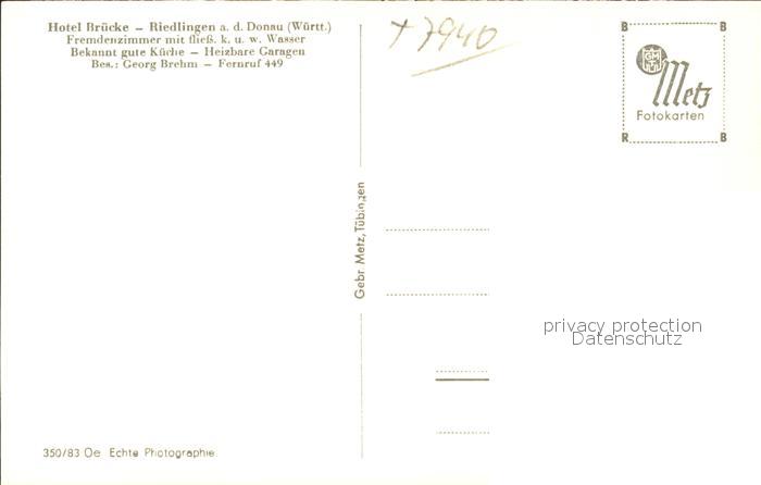 41815260 Riedlingen Donau Hotel zur Bruecke postalisch nicht gelaufen Erhaltung siehe scans Alte Ansichtskarte Postkarte hz_F Katcode 11110008426097