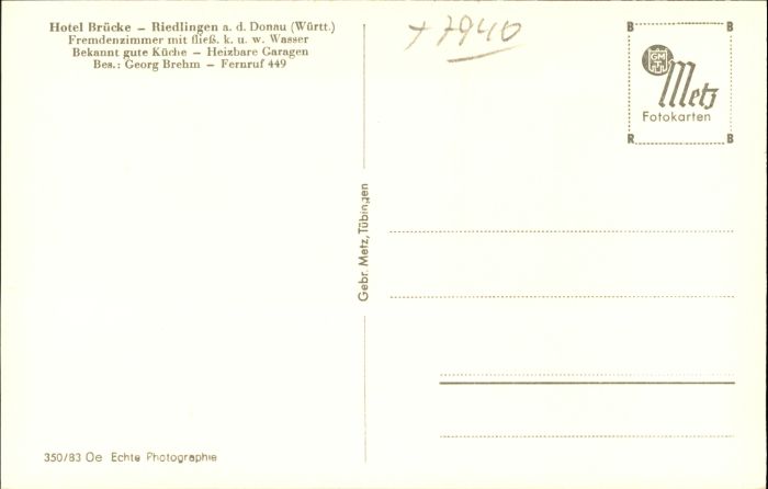 40806235 Riedlingen Donau Wuerttemberg Hotel zur Bruecke * postalisch nicht gelaufen Alte Ansichtskarte Postkarte Katcode 11110008426097