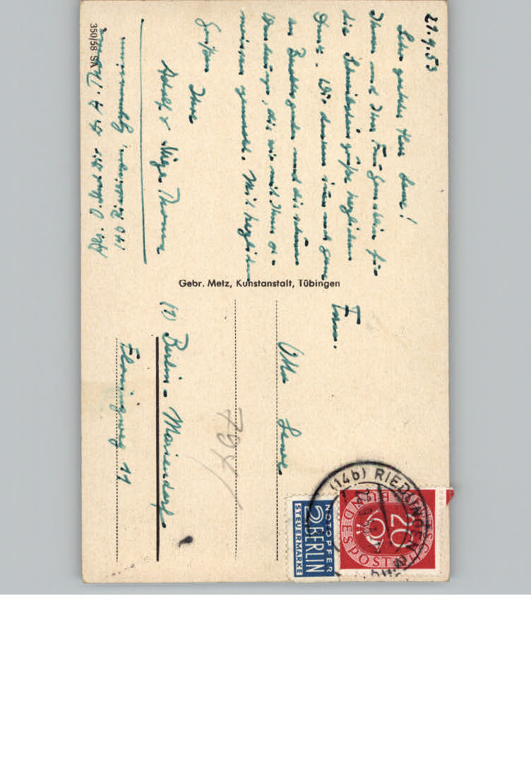 31154961 Riedlingen Wuerttemberg postalisch nicht gelaufen KatCode: 11110008426097