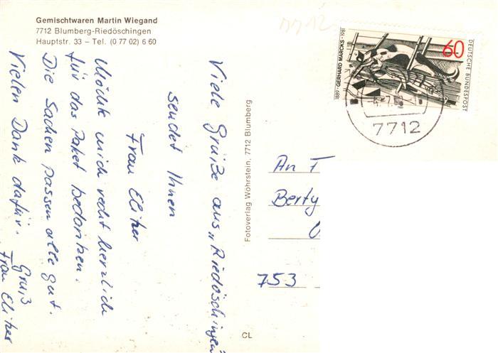73926937 alte Postkarte Riedoeschingen Panorama Gemischtwaren Wiegand Brunnenfigur Kirche Park postalisch gelaufen Erhaltung siehe scans [FriedD77] KatCode: 11110008326005