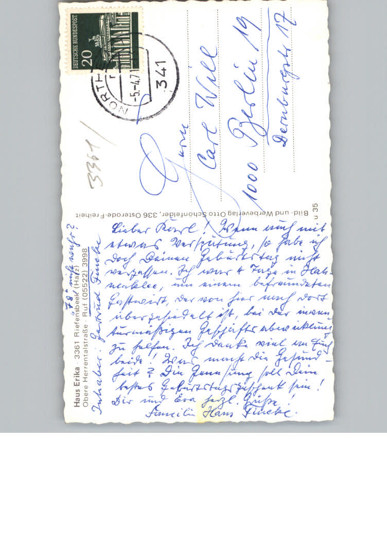 31167629 Riefensbeek postalisch nicht gelaufen KatCode: