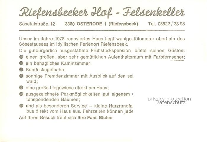 73724350 Riefensbeek-Kamschlacken Felsenkeller Riefenbeeker Hof Informationen postalisch nicht gelaufen Werbekarte (keine Postkarte) Erhaltung siehe scans [LiesaD40] KatCode: 11110003156011