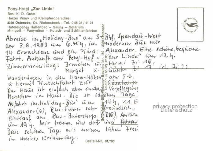 72907323 Riefensbeek-Kamschlacken Pony Hotel Zur Linde postalisch nicht gelaufen Erhaltung siehe scans [AndreD76] KatCode: 11110003156011