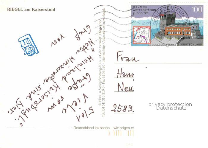 72798874 alte Postkarte Riegel Kaiserstuhl Ortsmotive Baeckerei Fachwerkhaus Bruecke Kirche postalisch gelaufen Erhaltung siehe scans [FriedD77] KatCode: 11110008316037