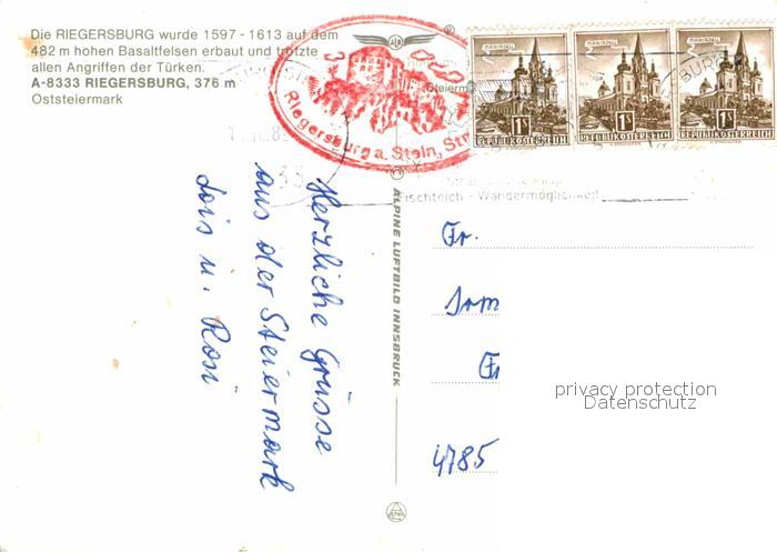 72618273 alte Postkarte Riegersburg auf dem Basaltfelsen Fliegeaufnahme postalisch gelaufen Erhaltung siehe scans [FriedD77] KatCode: 11390224060447