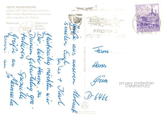 73359574 alte Postkarte Riegersburg Festung Riegersburg Fliegeraufnahme postalisch gelaufen Erhaltung siehe scans [WerneD78] KatCode: 11390224060447