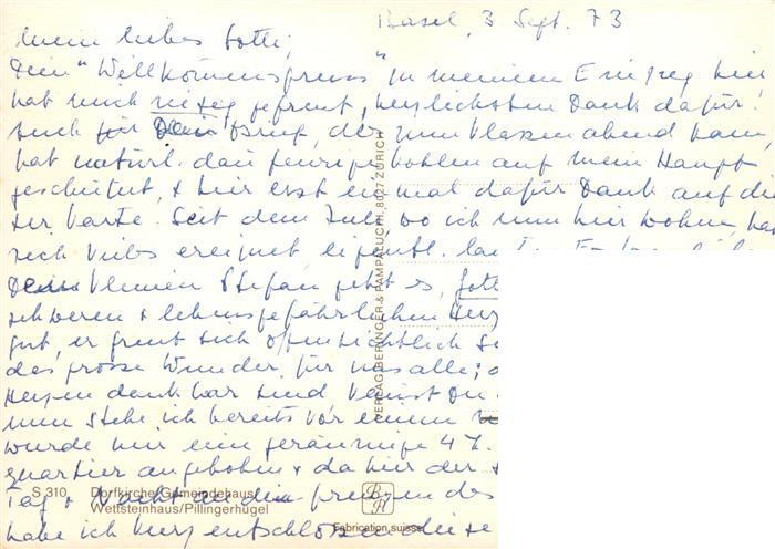13908661 Riehen Basel BS Dorfkirche Gemeindehaus Wettsteinhaus Pillingerhuegel postalisch nicht gelaufen Erhaltung siehe scans [WerneD78] KatCode: 11470050105784