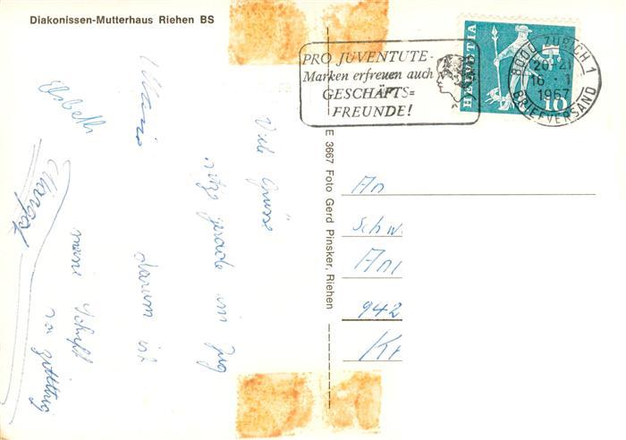 13960307 alte Postkarte Riehen BS Diakonissen-Mutterhaus postalisch gelaufen Erhaltung siehe scans [FriedD77] KatCode: 11470050105784