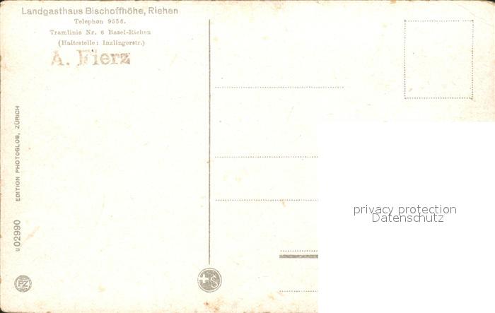 11739071 Riehen Landgasthaus Bischoffhoehe Litho postalisch nicht gelaufen Erhaltung siehe scans KatCode: 11470050105784