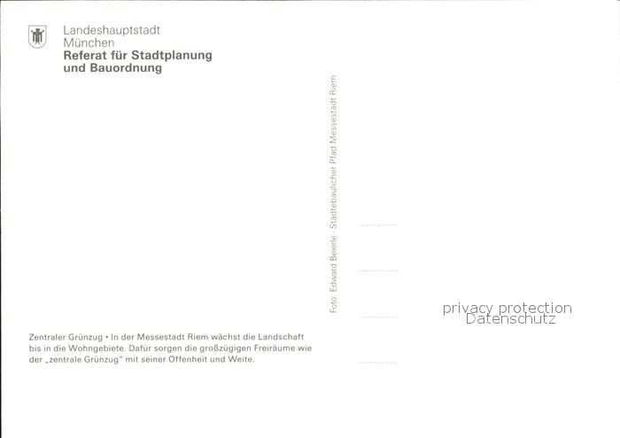 72149404 Riem Muenchen Staedtebaulicher Pfad Referat Stadtplanung Bauordnung Zentrale Gruenzug postalisch nicht gelaufen Erhaltung siehe scans KatCode: 11110009162000
