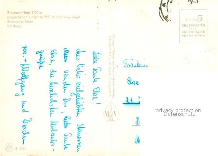 73796631 alte Postkarte Riemannhaus 2177m Steinernes Meer AT mit Schoenfeldspitze und Wurmkopf postalisch gelaufen Erhaltung siehe scans [WerneD78] KatCode: 11390