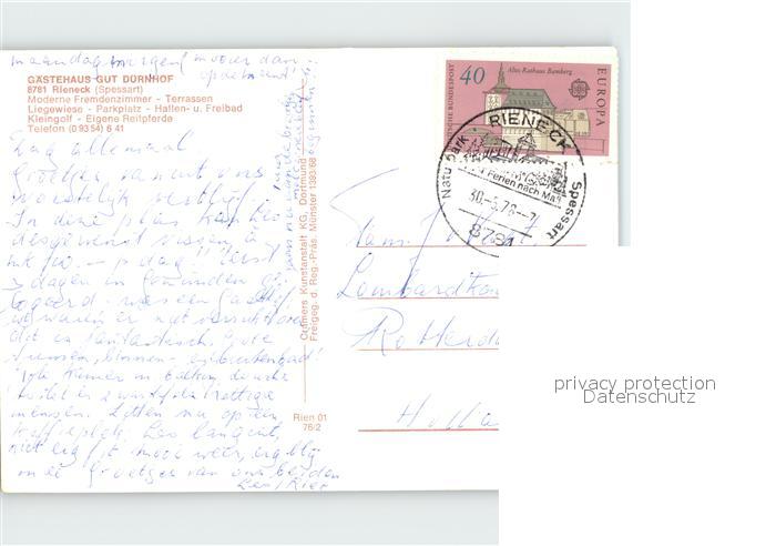 72259010 alte Postkarte Rieneck Gaestehaus Gut Duernhof Fliegeraufnahme postalisch gelaufen Erhaltung siehe scans KatCode: 11110009677177