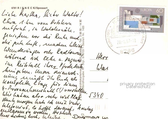 72753962 alte Postkarte Rieneck Schloss Fliegeraufnahme postalisch gelaufen Erhaltung siehe scans [FriedD77] KatCode: 11110009677177