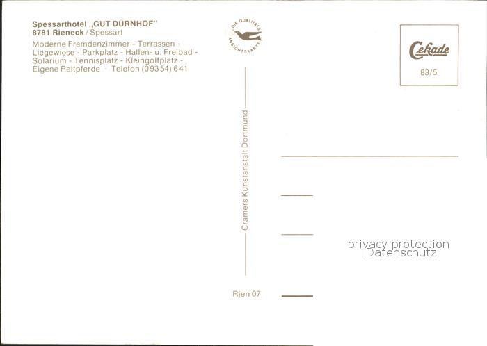72296760 Rieneck Spessarthotel Gut Duernhof Hallenbad Angelteich postalisch nicht gelaufen Erhaltung siehe scans KatCode: 11110009677177