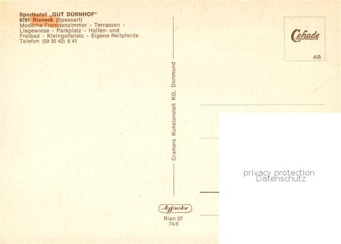 73761299 Rieneck Sporthotel Gut Duernhof Restaurant Hallenbad Wintergarten postalisch nicht gelaufen Erhaltung siehe scans [FriedD77] KatCode: 11110009677177