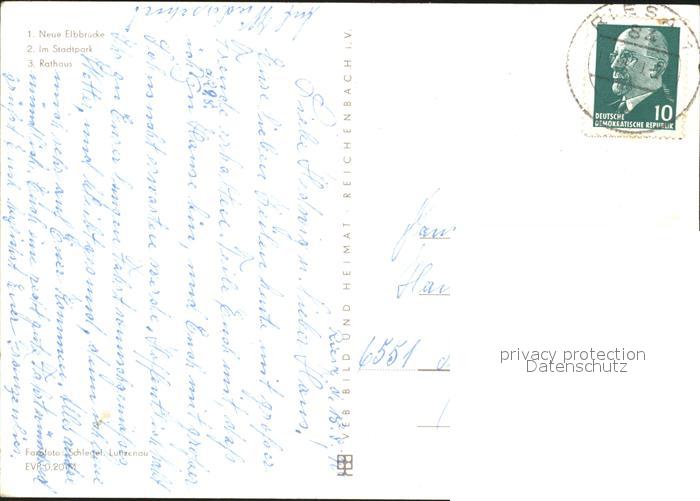 72383358 alte Postkarte Riesa Sachsen Elbbruecke Stadtpark Rathaus postalisch gelaufen Erhaltung siehe scans KatCode: 11110014285250