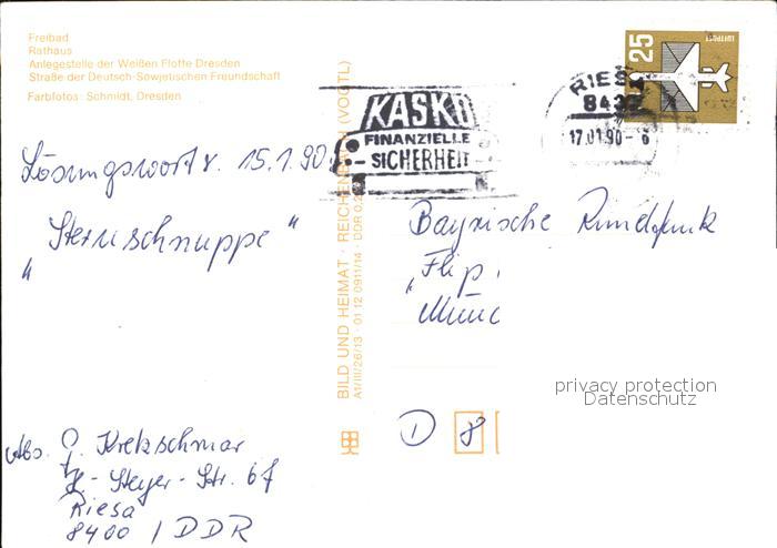 72461687 alte Postkarte Riesa Sachsen Freibad Rathaus Anlegestelle Weisse Flotte Dresden postalisch gelaufen Erhaltung siehe scans KatCode: 11110014285250