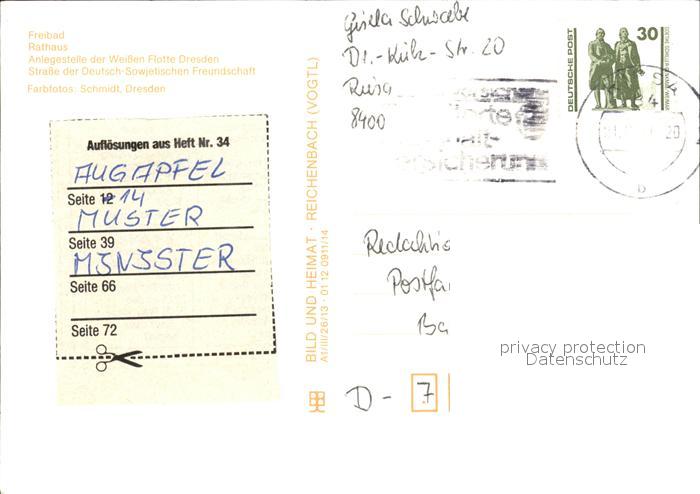 72461711 alte Postkarte Riesa Sachsen Freibad Rathaus Anlegestelle Weisse Flotte Dresden postalisch gelaufen Erhaltung siehe scans KatCode: 11110014285250