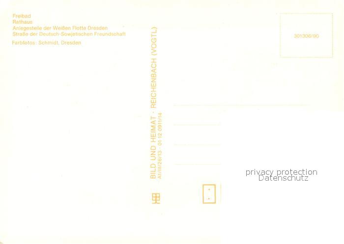 73065356 Riesa Sachsen Freibad Rathaus Anlegestelle Weisse Flotte Strasse der DSF postalisch nicht gelaufen Erhaltung siehe scans [FriedD77] KatCode: 11110014285250