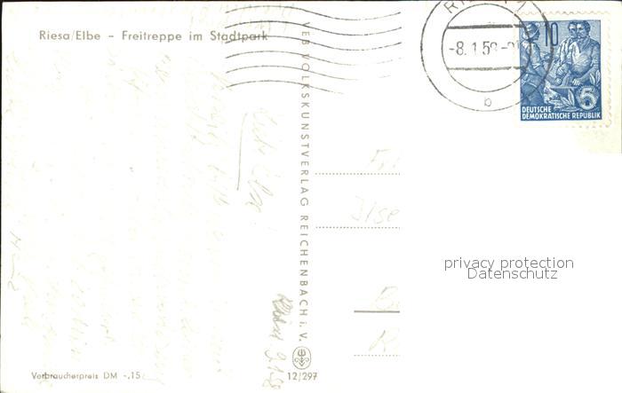 72595699 alte Postkarte Riesa Sachsen Freitreppe im Stadtpark postalisch gelaufen Erhaltung siehe scans [FriedD77] KatCode: 11110014285250