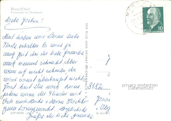 72359834 alte Postkarte Riesa Sachsen Freitreppe im Stadtpark postalisch gelaufen Erhaltung siehe scans KatCode: 11110014285250