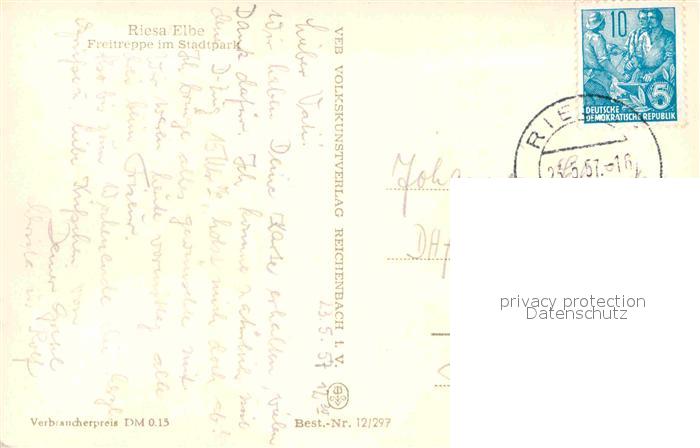 72647194 alte Postkarte Riesa Sachsen Freitreppe Stadtpark postalisch gelaufen Erhaltung siehe scans [NatalD47] KatCode: 11110014285250
