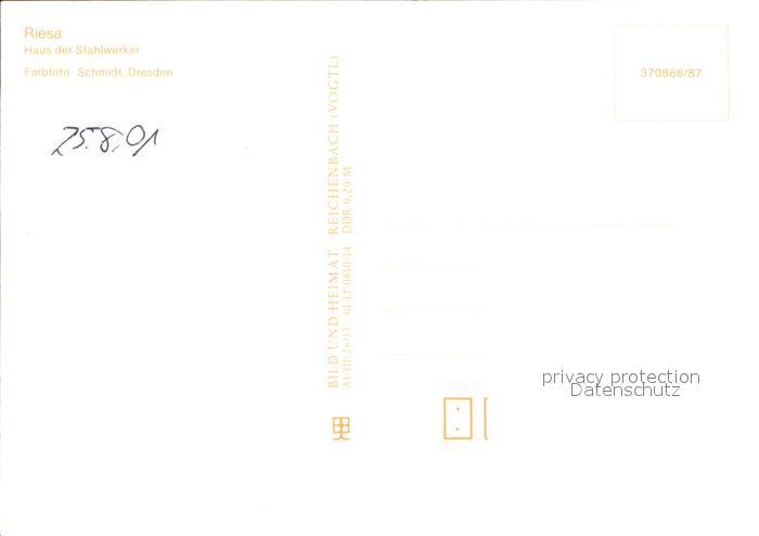 72023386 Riesa Sachsen Haus der Stahlwerker postalisch nicht gelaufen Erhaltung siehe scans KatCode: 11110014285250