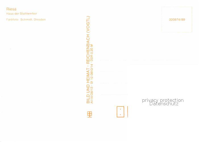 72620652 Riesa Sachsen Haus der Stahlwerker postalisch nicht gelaufen Erhaltung siehe scans [LiesaD40] KatCode: 11110014285250