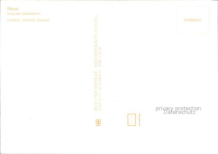 72321496 Riesa Sachsen Haus der Stahlwerker postalisch nicht gelaufen Erhaltung siehe scans KatCode: 11110014285250