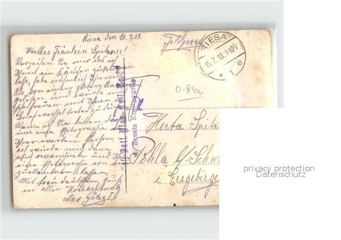 42227952 alte Postkarte Riesa Sachsen Kaiser Wilhelmsplatz postalisch gelaufen Feldpost Erhaltung siehe scans KatCode: 11110014285250