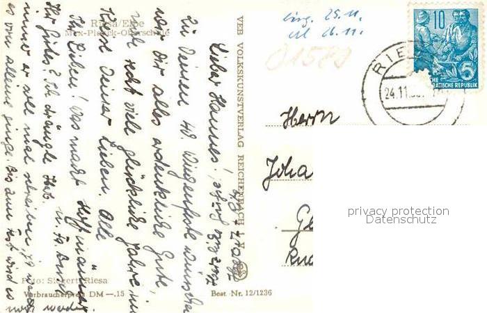 72642711 alte Postkarte Riesa Sachsen MaxPlanck Oberschule postalisch gelaufen Erhaltung siehe scans [AndreD76] KatCode: 11110014285250