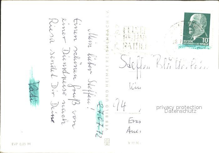 72359830 alte Postkarte Riesa Sachsen Neue Elbbruecke Freitreppe Stadtpark Max Planck Oberschule Rathaus postalisch gelaufen Erhaltung siehe scans KatCode: 11110014285250