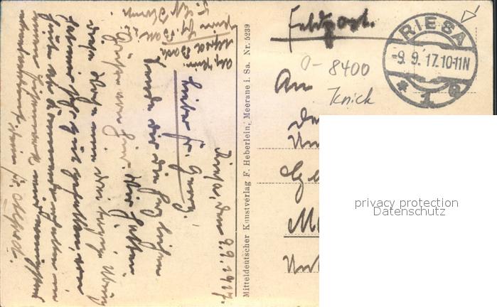 42197226 alte Postkarte Riesa Sachsen Stadtansicht postalisch gelaufen Feldpost Erhaltung siehe scans KatCode: 11110014285250
