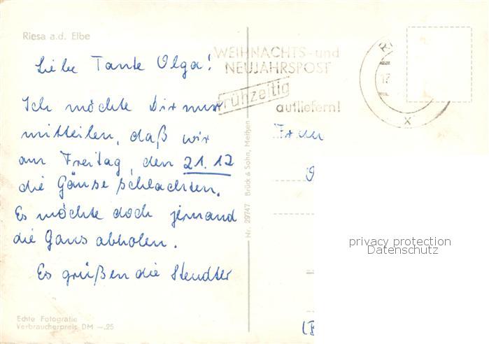 73750975 alte Postkarte Riesa Sachsen Stadtpark Wasserturm Blick vom Kirchturm postalisch gelaufen Erhaltung siehe scans [WerneD78] KatCode: 11110014285250