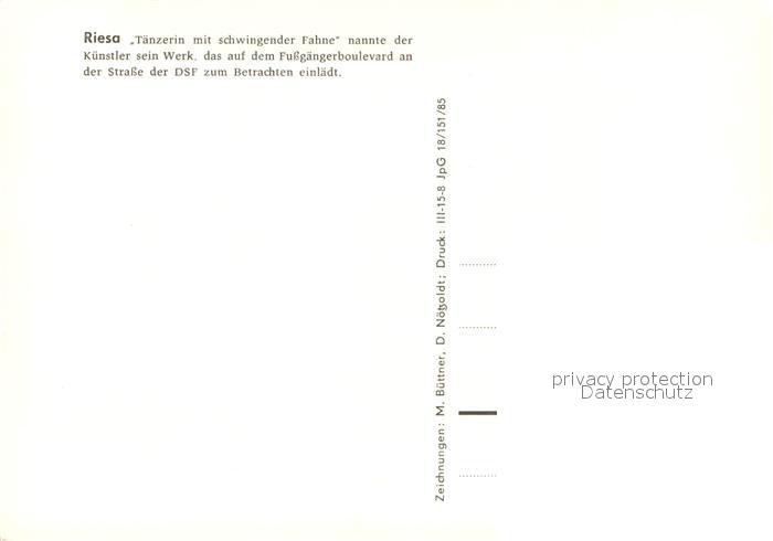73722984 Riesa Sachsen Strasse der DSF Zeichnung Taenzerin mit schwingender Fahne postalisch nicht gelaufen Erhaltung siehe scans [WerneD78] KatCode: 11110014285250