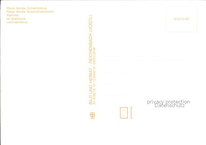 72261779 Riesa Sachsen Weida Schwimmbad Bushaltestelle Rathaus Stadtpark Lenindenkmal postalisch nicht gelaufen Erhaltung siehe scans KatCode: 11110014285250
