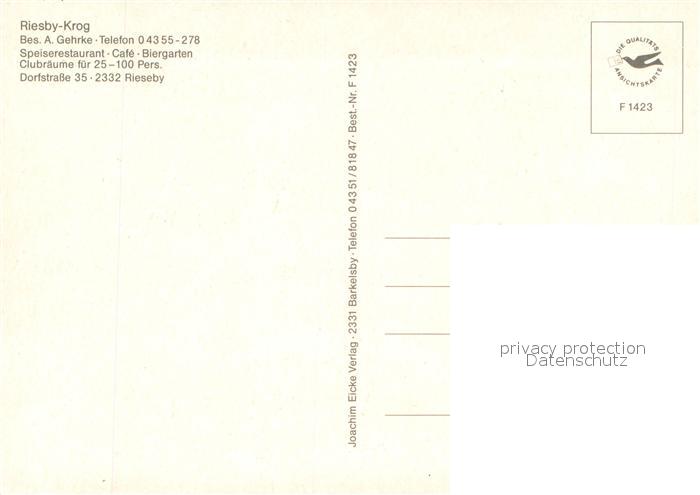 73715991 Rieseby Riesby Krog Speiserestaurant Cafe Gastraeume postalisch nicht gelaufen Erhaltung siehe scans [WerneD78] KatCode: 11110001058137