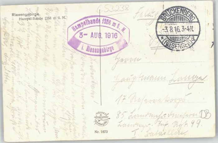 10004280 Riesengebirge Krkonose Karkonosze Riesengebirge Hampel Baude KatCode 11520