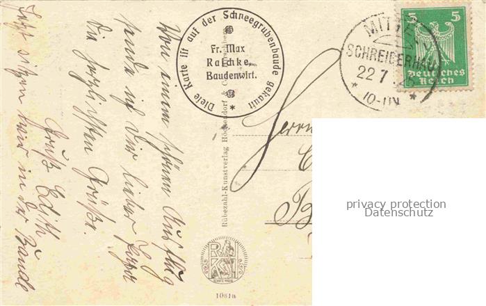 74036661 old postcard Riesengebirge Krkonose Karkonosze Schneegrubenwand mit Baude postalisch gelaufen Erhaltung siehe scans [WerneD78] KatCode: 11520