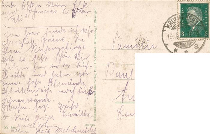 old postcard Riesengebirge Krkonose Karkonosze Schneekoppenbaude Kirche postalisch gelaufen Erhaltung siehe scans [FriedD77]