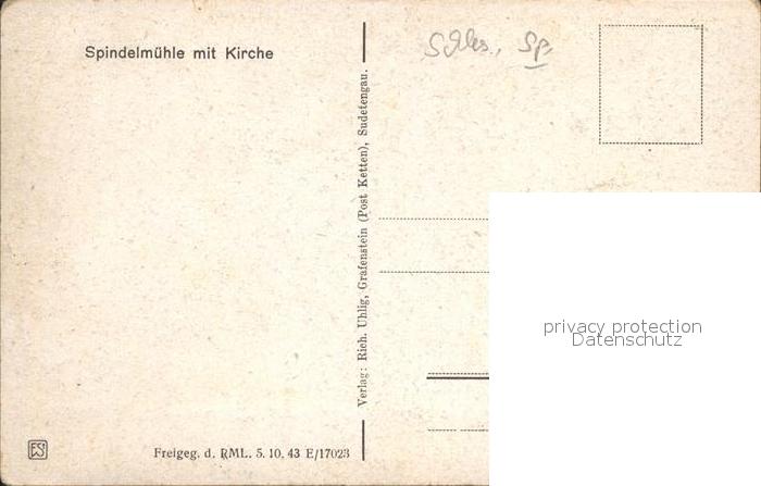 12175579 Riesengebirge Krkonose Karkonosze Spindelmühle mit Kirche KatCode 11520