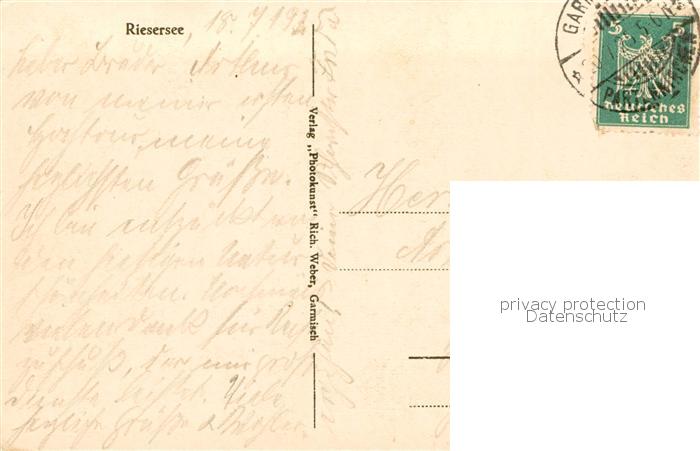 73806356 Riesersee Riessersee Garmisch-Partenkirchen Panorama postalisch gelaufen Erhaltung siehe scans [WerneD78] alte Postkarte Wern Katcode 11110009180117