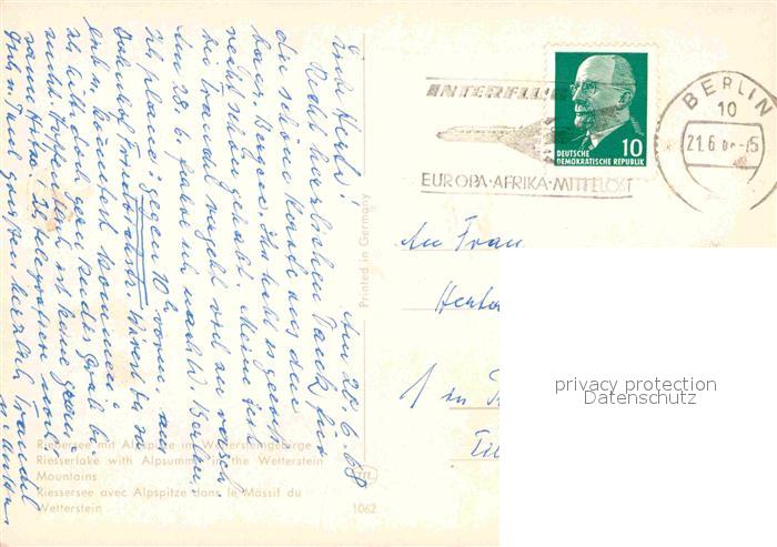 72886574 alte Postkarte Riessersee Brunnen Steg am See Alpspitze Wettersteingebirge postalisch gelaufen Erhaltung siehe scans [FriedD77] KatCode: 11110009180117