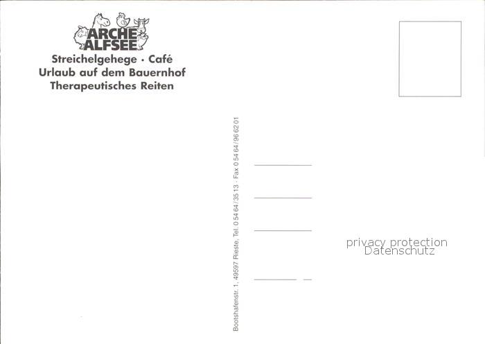 72608746 Rieste Osnabrueck Arche Alfsee Streichelgehege Cafe Urlaub auf dem Bauernhof postalisch nicht gelaufen Erhaltung siehe scans [LiesaD40] KatCode: 11110003459031