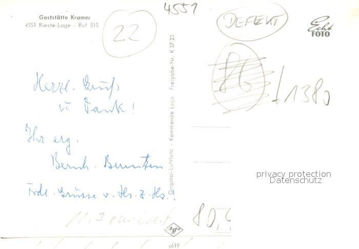 73701522 Rieste Osnabrueck Fliegeraufnahme Gaststaette Kramer Defekt postalisch nicht gelaufen Erhaltung siehe scans [LiesaD40] KatCode: 11110003459031