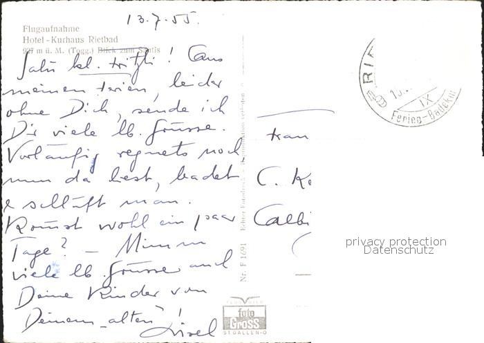 11630396 alte Postkarte Rietbad Fliegeraufnahme Hotel Kurhaus postalisch gelaufen Erhaltung siehe scans KatCode: 11470190585828