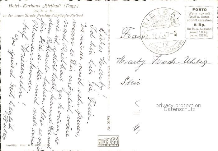 11632804 alte Postkarte Rietbad Kurhaus Rietbad postalisch gelaufen KatCode: 11470190585828