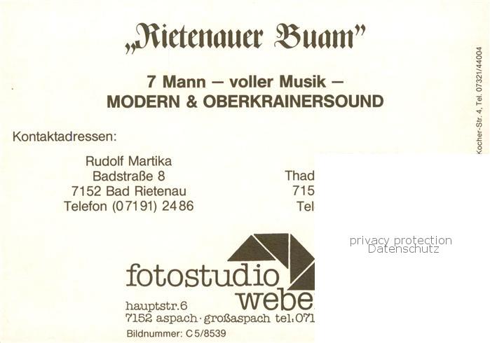 73866967 Rietenau Aspach Rietenauer Buam Musikgruppe postalisch nicht gelaufen Erhaltung siehe scans [WerneD78] KatCode: 11110008119087